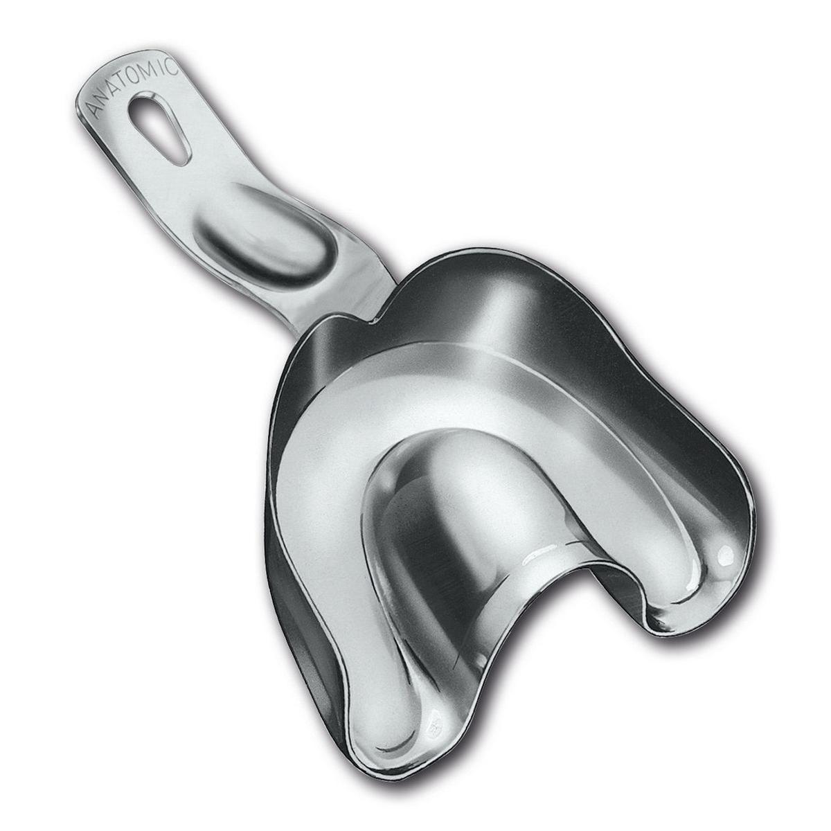 Edelstahl-Abformlöffel, made in Germany. Verlängerter, anatomisch ausgeformter Griff, welcher beim Abdruck eine bessere Kraftübertragung gewährleistet und somit zu einer präzisen Abformung beiträgt. Griff komplett geschweißt, nicht nur gepunktet, dadurch wird die Gefahr eines Bruches deutlich reduziert. Leichte Reinigung.