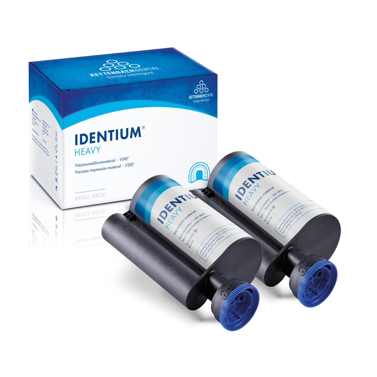 Identium Heavy ist ein zähfließendes Präzisionsabformmaterial aus Vinylsiloxanether, das aufgrund seines optimalen Druckaufbaus in Kombination mit Identium Light besonders gute Ergebnisse in der Doppelmischtechnik liefert.
