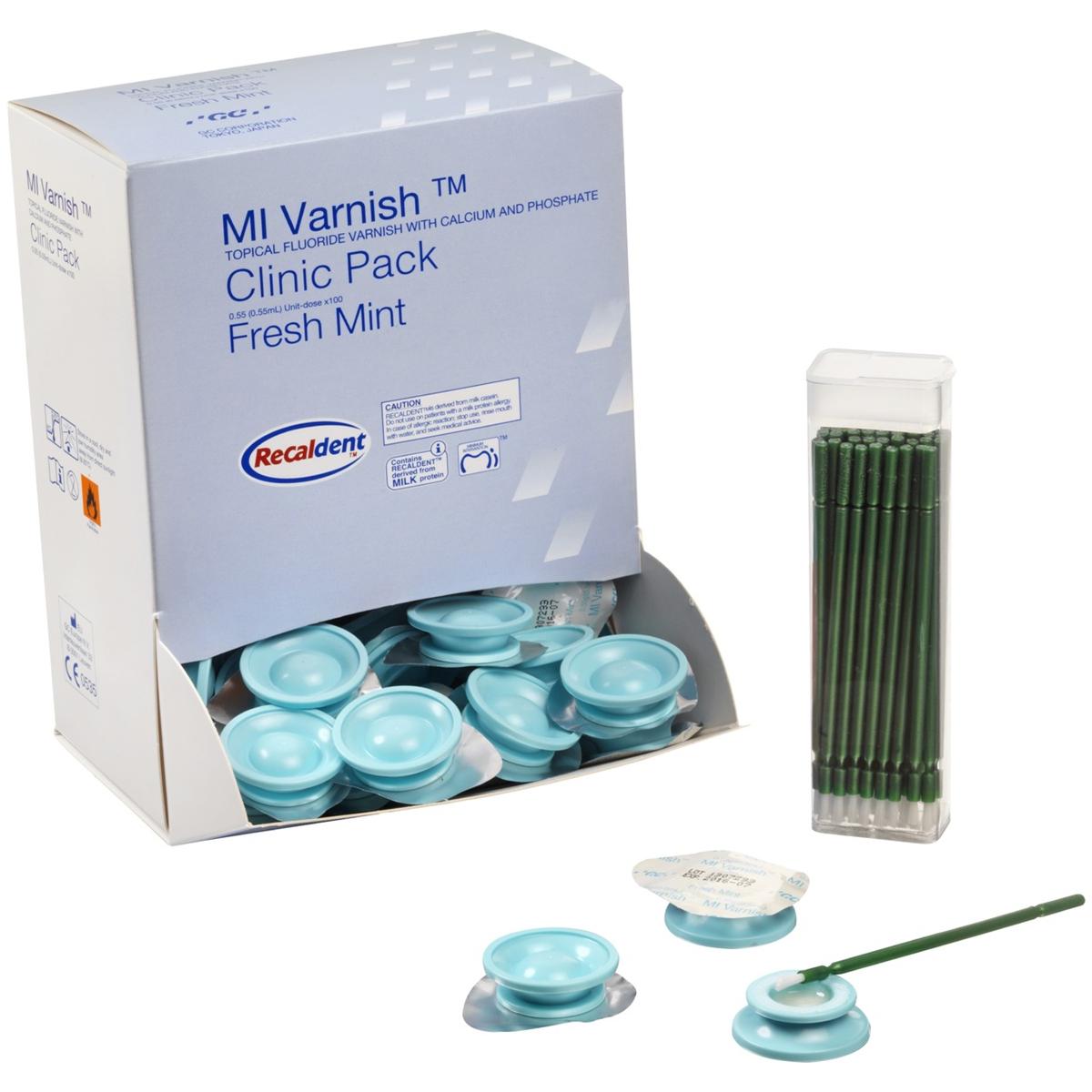 GC MI Varnish - Clinic-Packung - Minze, Packung 100 x 0,4 ml und 100 Bürsten