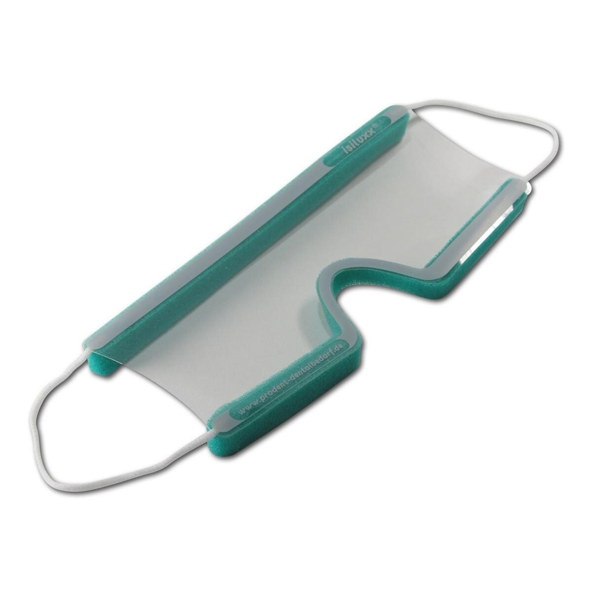 Patienten-Einwegschutzbrille superweiche Schaumstoffauflage sicherer Halt, kein Verrutschen dichter Abschluss an Wange, Nase, Stirn seitliche Belüftung, kein Anlaufen des Sichtfeldes bequeme, flexible Ohrschlaufen, reißfest passend für alle Kopfgrößen. Ideal für die PZR. Infektionsschutz schützt die Augen des Patienten vor Bohr- und Frässpäne sowie Spray usw.auch für Behandler und Praxisteam empfehlenswert isiluxx UV mit UV-Lichtdämpfung speziell für Bleaching und Arbeiten mit UV-Lampe im platzsparenden Spenderkarton, einzeln entnehmbar.