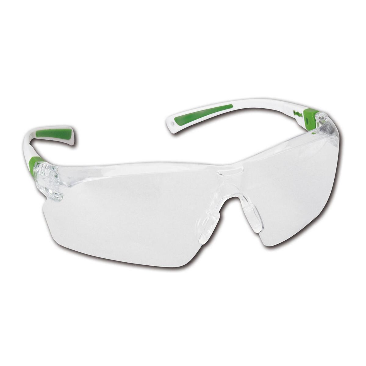Extrem leichte Schutzbrille mit weichen Softbügeln und verstellbarem weichem Nasensteg. Individuell einstellbar, durch intergrierter Auszugssicherung. Farblose Scheibe aus Polycarbonat mit HC / AF Beschichtung (antifog + kratzfest).