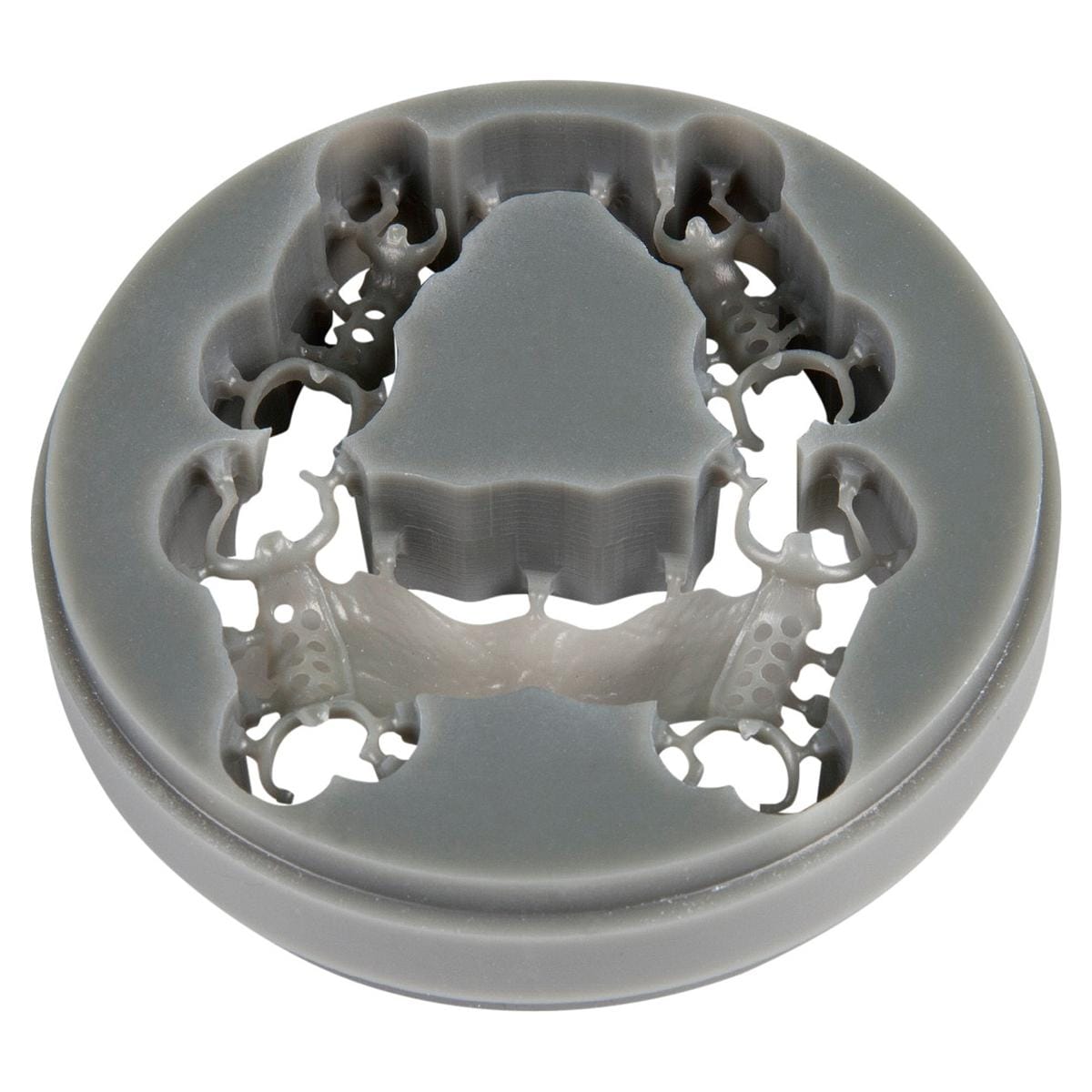 Wachsfräsblank mit spezieller Wachsrezeptur zur Herstellung Modellgussgerüste. Flexibel und dennoch Bruch- und Formstabil. Daher können dünn auslaufende Fräsungen wie Ringklammern problemlos ausgeführt werden. Mit umlaufendem Absatz.