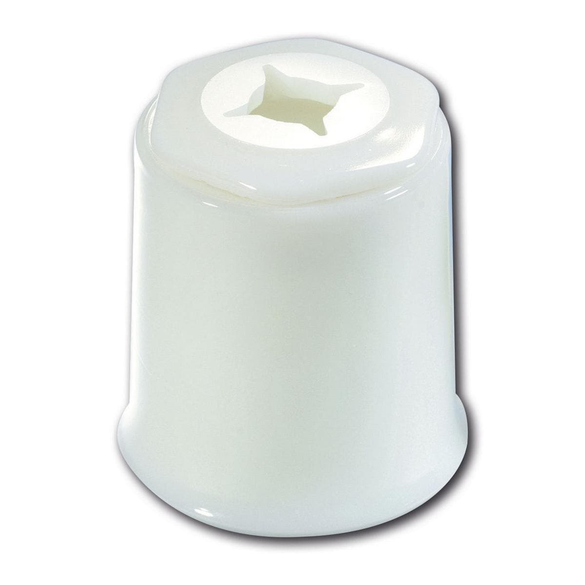 Standmodell aus Opalglas, autoklavierbar, mit abnehmbarem Sternlochdeckel. Gebrauchte Wattetupfer und -pellets können leicht abgestreift werden.