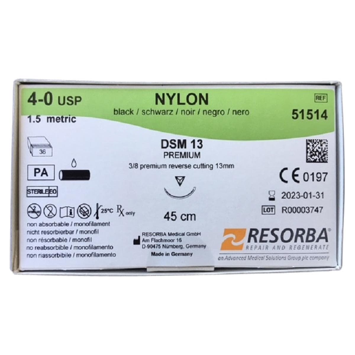 NYLON monofil - Nadeltyp DSM 13 - USP 4-0, Länge 45 cm, Packung 36 Stück