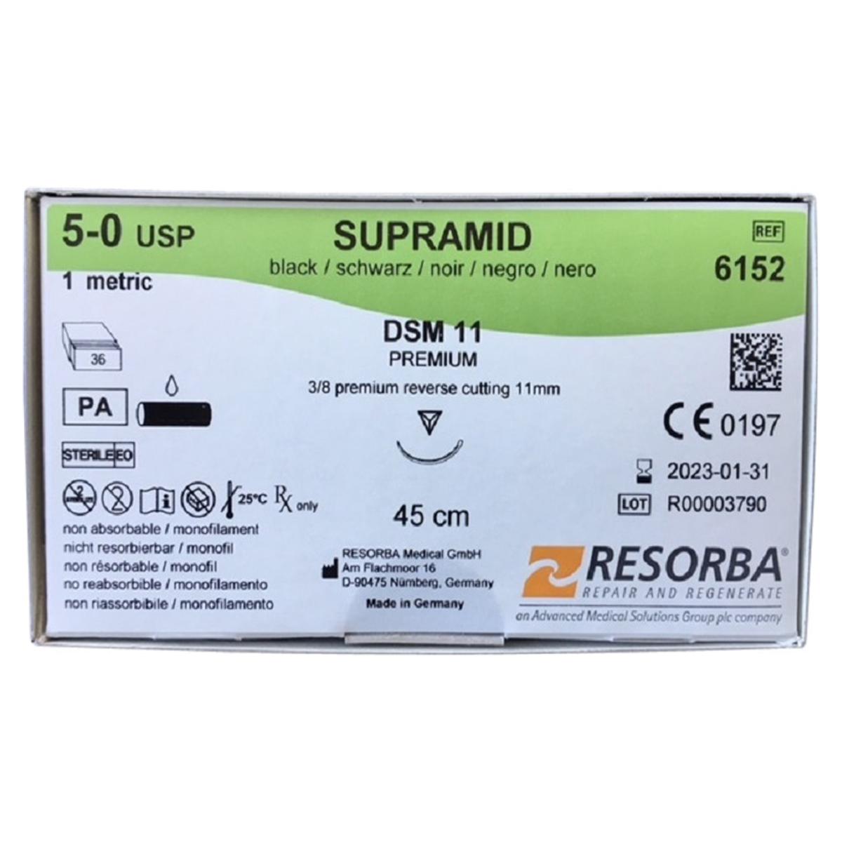 SUPRAMID schwarz - Nadeltyp DSM 11 - USP 5-0, Länge 45 cm, Packung 36 Stück