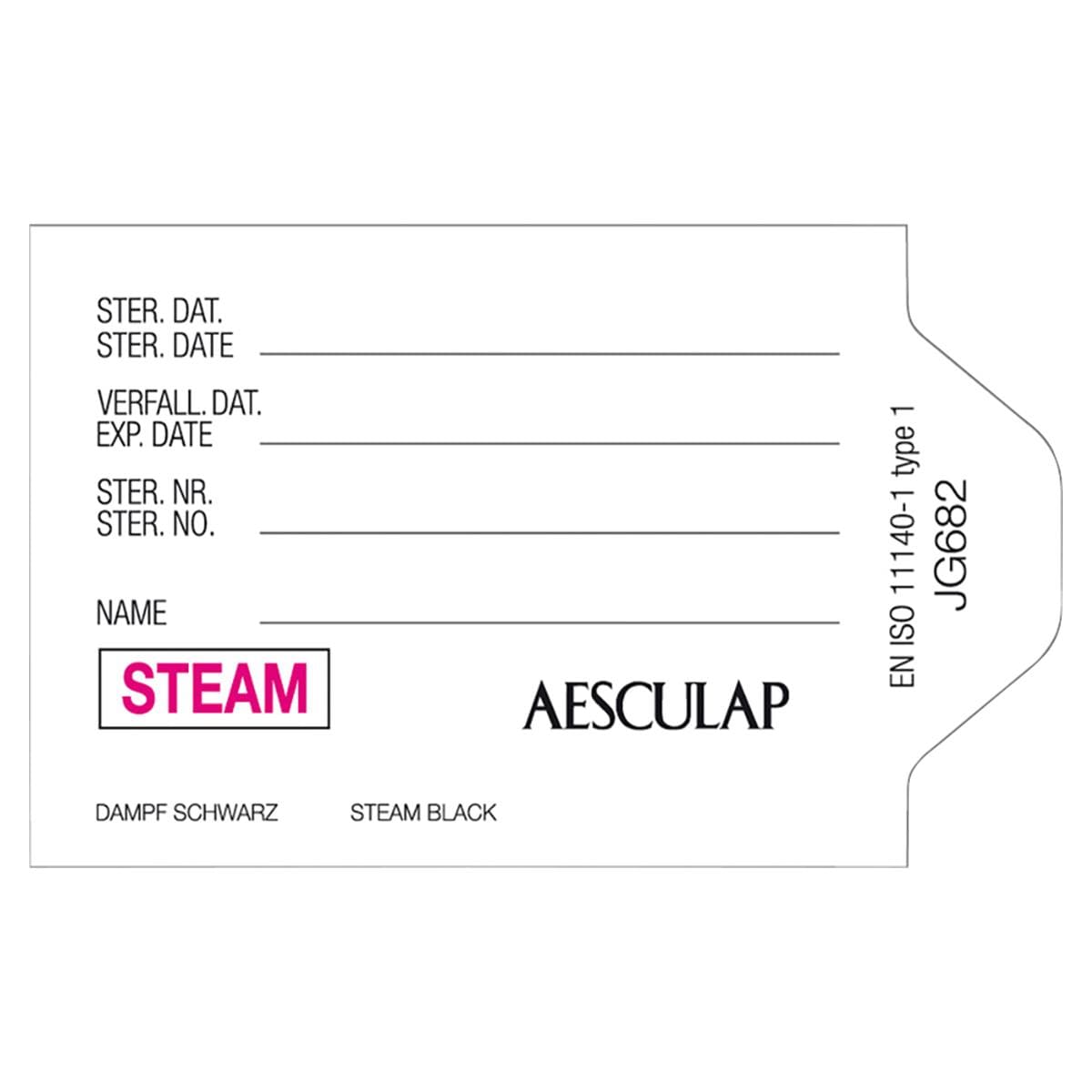 Indikatorschild mit Kleberücken und Indikator für die Dampfsterilisation. Passend für Mini- und Dental-Container.