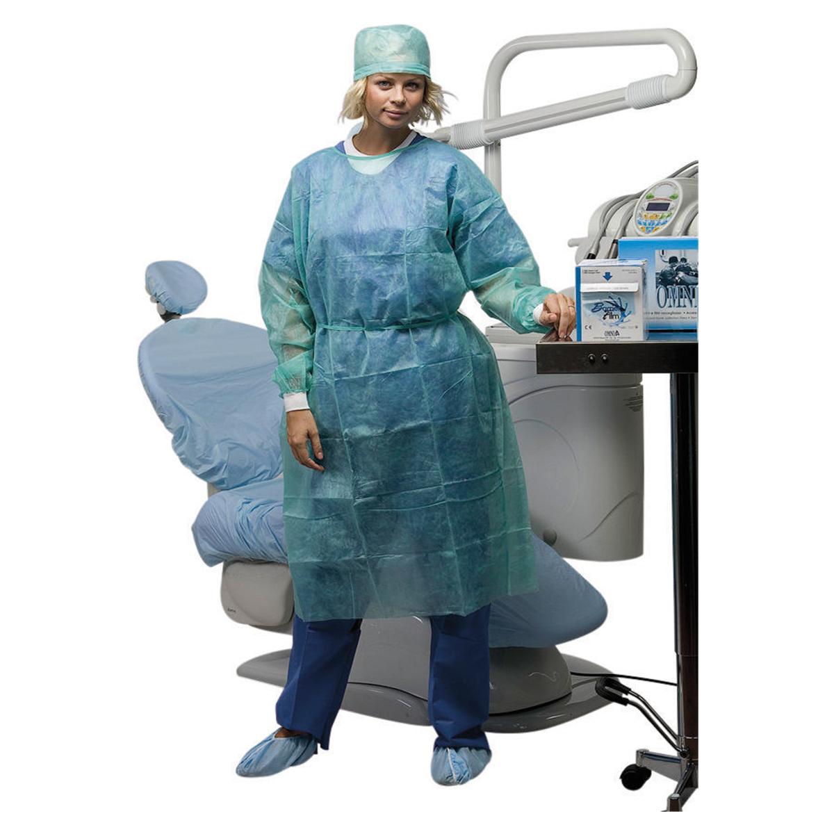 OP-Kittel aus trageleichtem Vliesstoff in den Farben grün und hellblau. Diese Kittel sind speziell für kleinere OP-Eingriffe sowie für alle parodontologischen Eingriffe geeignet. Die Packungen enthalten 50 Stück einer Größe einzeln steril verpackt.