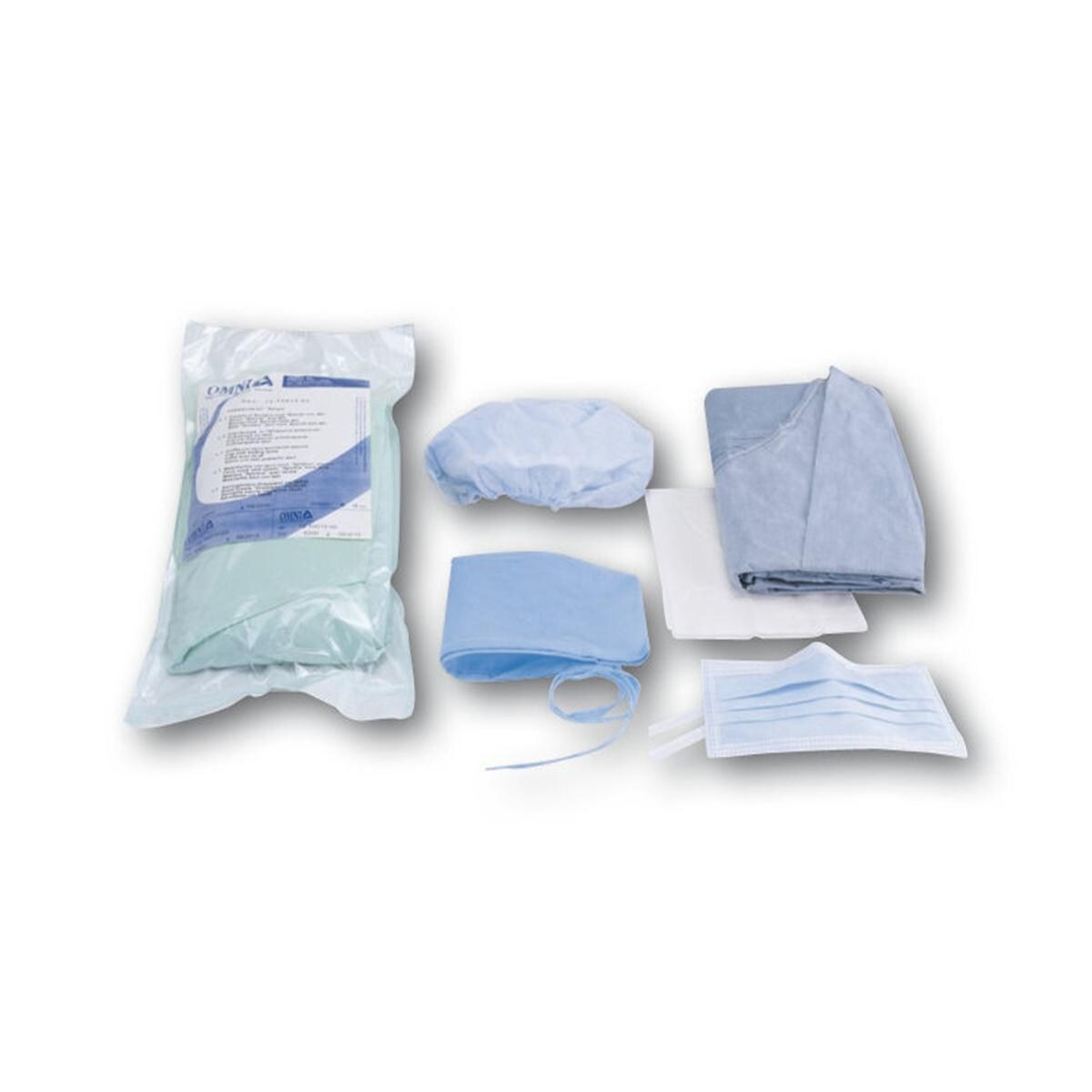 1 OP-Kittel, 1 Paar Schuhbezügen, 1 Mundschutz und 1 OP-Haube.