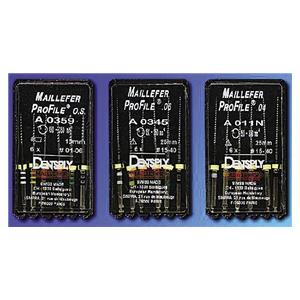 NiTi-Instrumente für die maschinelle Wurzelkanalaufbereitung, speziell bei der "Crown Down"-Kanalpräparationstechnik. Extrem biegsam, sehr gutes Schneidevermögen, für Winkelstück. Die Konizität der Instrumente - ProFile.04 = 4 %, ProFile.06 = 6 % - liegt beim Doppelten bzw. Dreifachen von herkömmlichen ISO-Instrumenten.