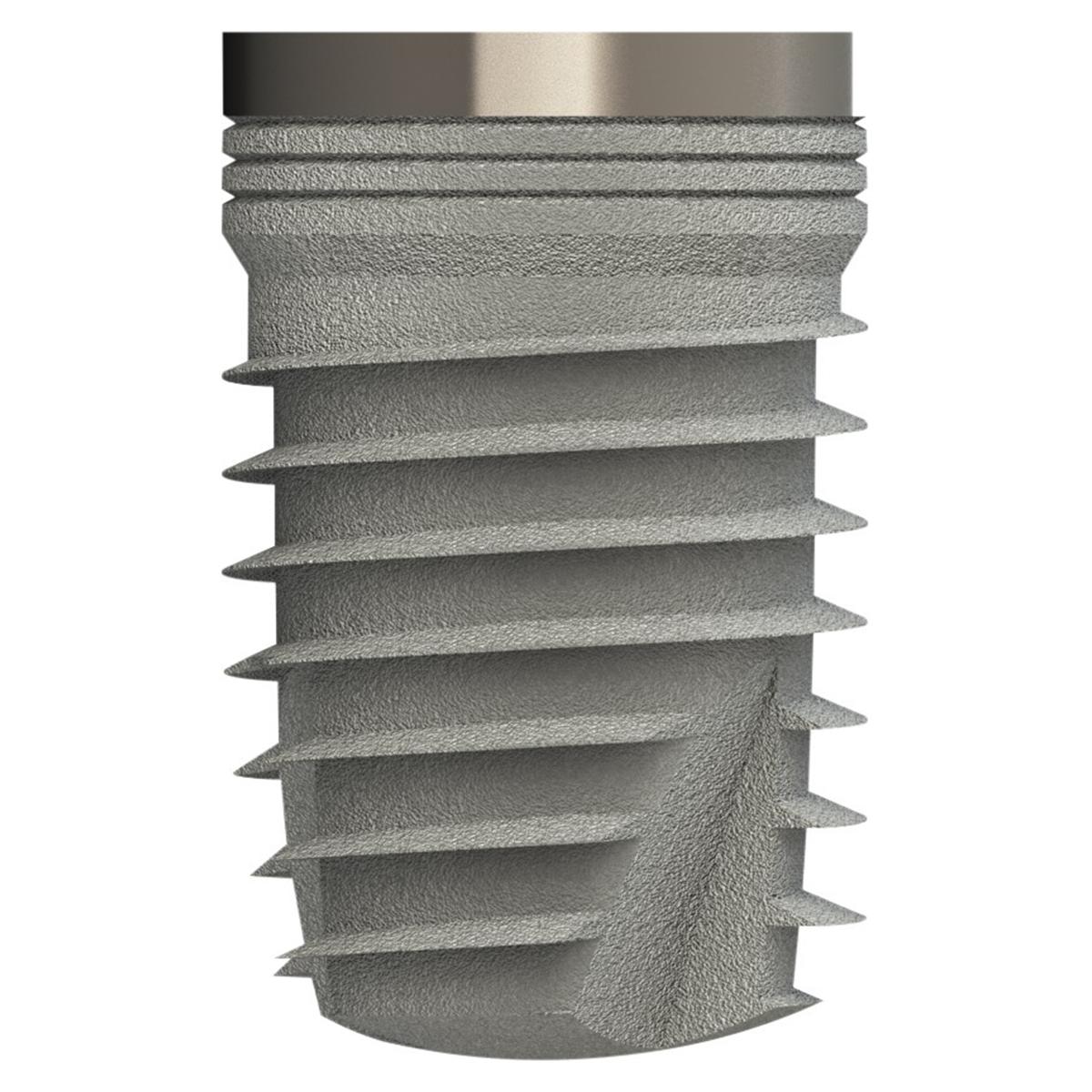 DUOTex Implantat durch Pick-UP Aufnahme zum maschinellen inserieren. Mit einem 1 mm breiten maschinierten Anteil an der Schulter.