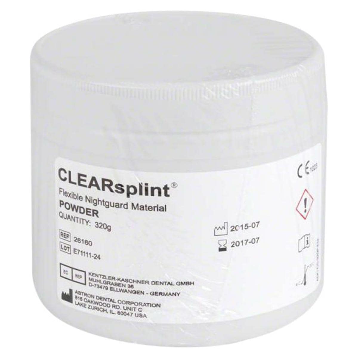 MMA-freier Kunststoff zur Herstellung funktionstherapeutischer, bruchsicherer Aufbissschienen. Die thermoplastische Flexibilität der Schiene ermöglicht eine präzise Anpassung. Sie ist im Mund selbstadjustierend, wenn sie vor Gebrauch in warmes Wasser (40 - 50 °C) gelegt wird. CLEARsplint hat eine hohe Verträglichkeit und schließt Allergieprobleme aus, da kein MMA enthalten ist. Die Aufbissschienen sind durchsichtig und können nahezu unbemerkt getragen werden.