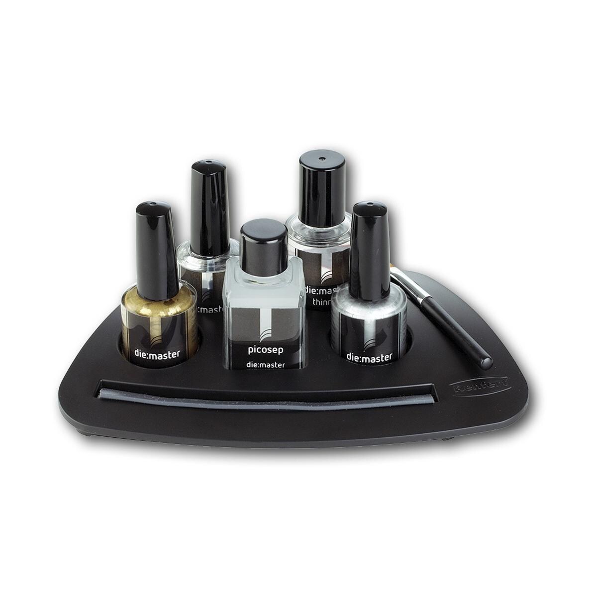 2 x 15 ml Lack, 30 ml Verdünner, 15 ml die:master duo, 30 ml Picosep, 1 Isolierpinsel und 1 Aufsteller.