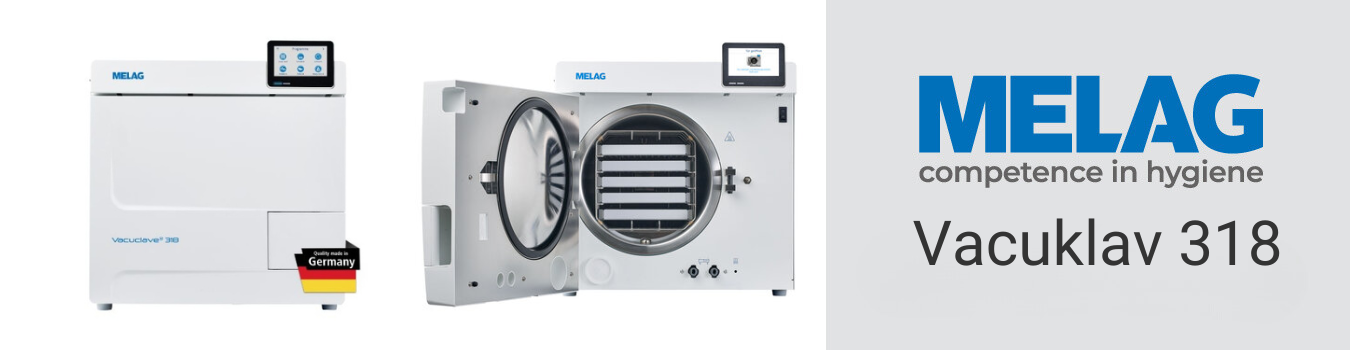 Mit der neuen Gerätelinie Vacuclave 318 bietet MELAG eine ökonomisch sinnvolle Lösung für die Zahnarztpraxis. Die Überarbeitung des Vacuklavs 31B+ mit Anleihen von der Premiumlinie führt zu einem optimalen Produkt für die zahnärztliche Praxis. Natürlich fehlen dem 318/323 einige Premium-Features, dafür arbeitet er technisch tadellos. Optimal für die kleine Einzelpraxis - die Lösung aus dem MELAG-Portfolio: Vacuclave 318.